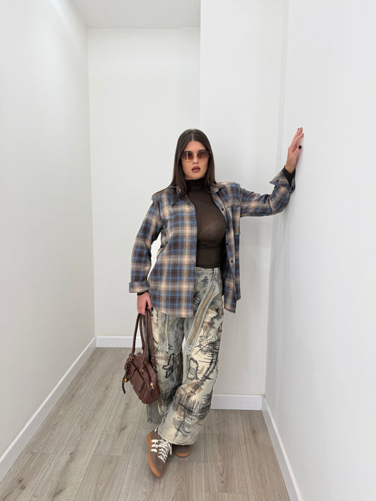 Camicia over con spalline imbottite e maniche larghe, veste fino ad una L abbondante. Abbinata...