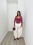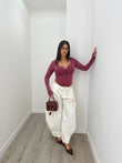 Body elasticizzato e modellante con maniche a guanto, porta il dettaglio della zip che potete regolare a vostro piacimento. Abbinato al Pantalone Michelle. Il body veste fino ad una L abbondante