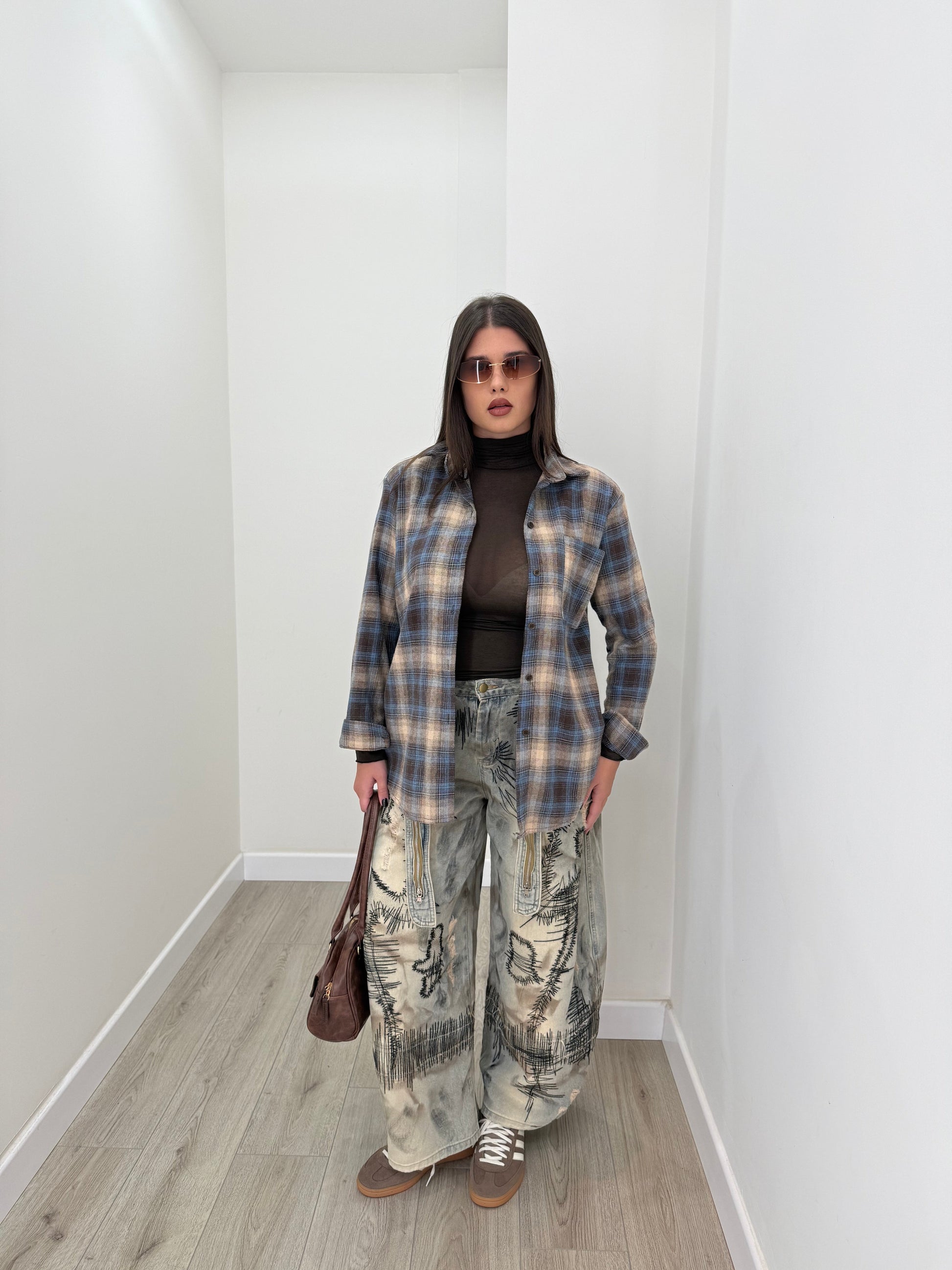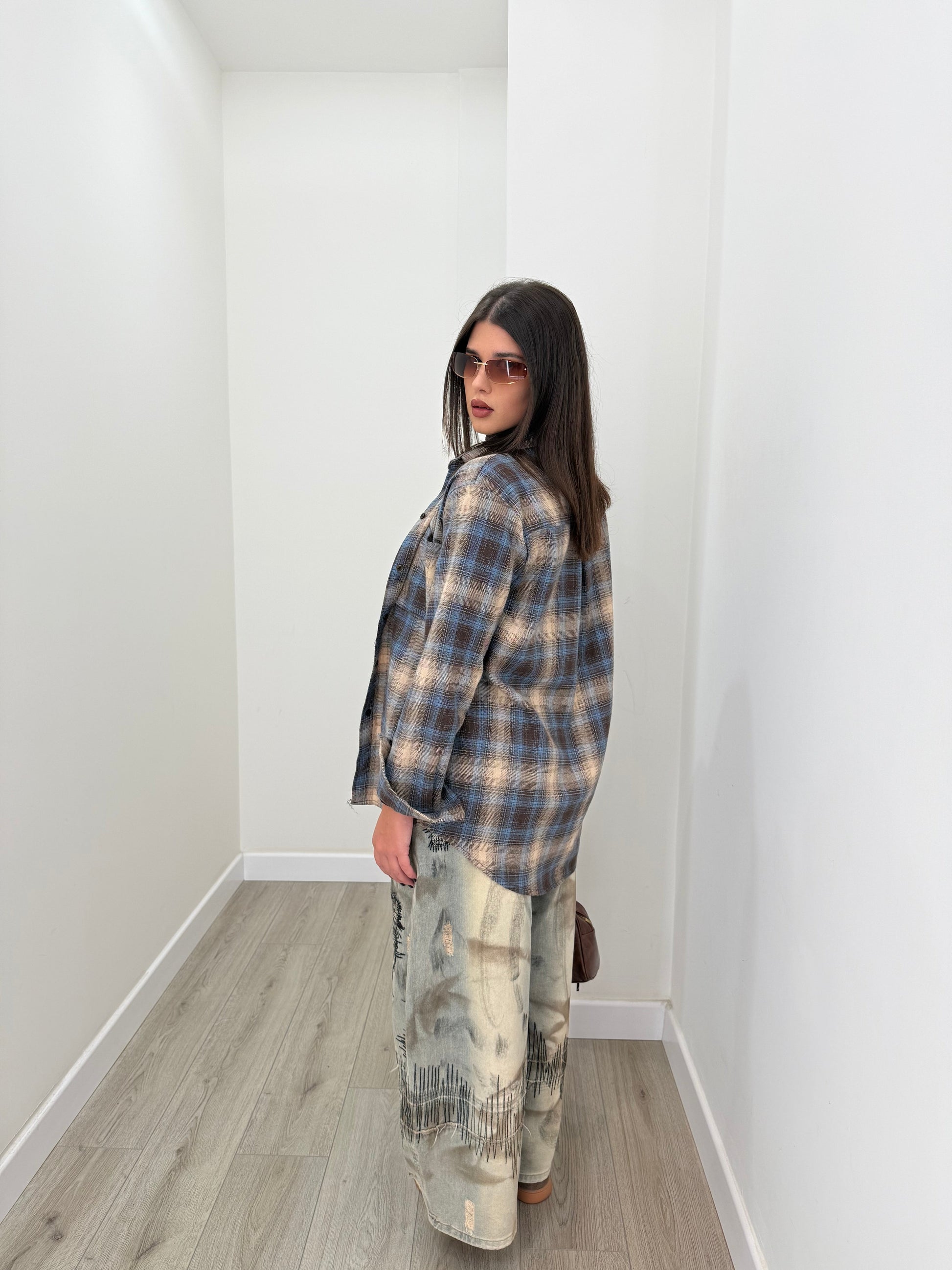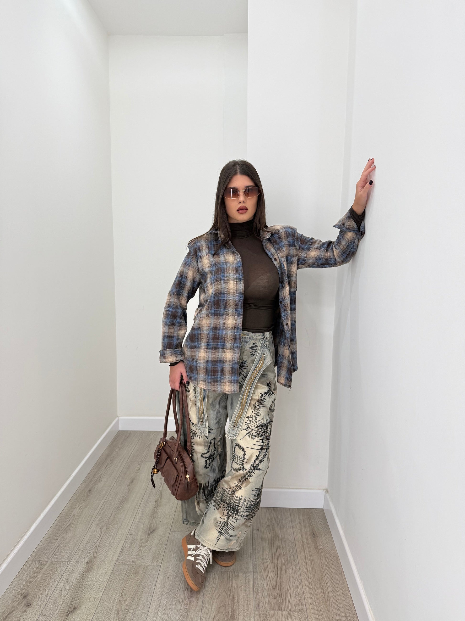 Camicia over con spalline imbottite e maniche larghe, veste fino ad una L abbondante. Abbinata al jeans STREET e maglia aurora 2