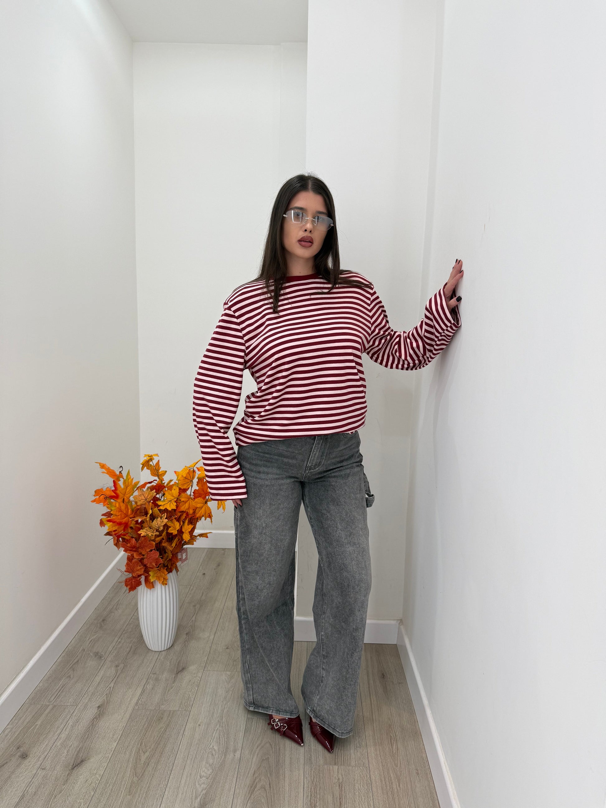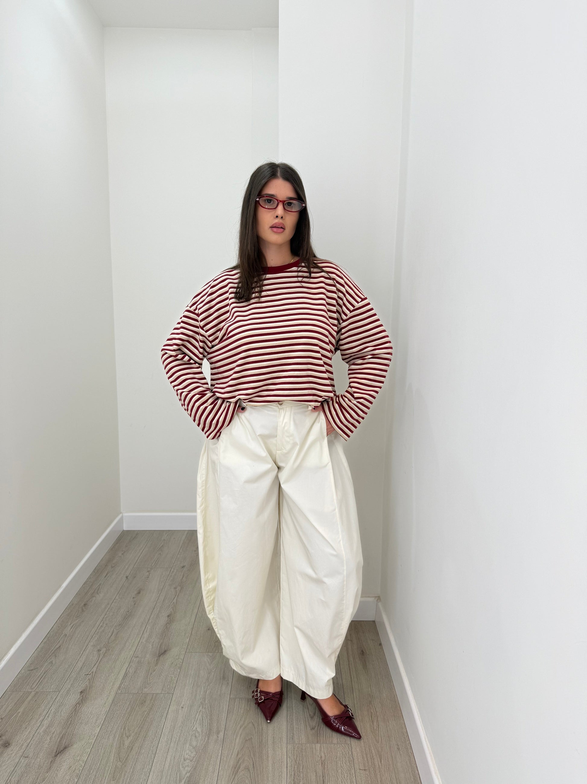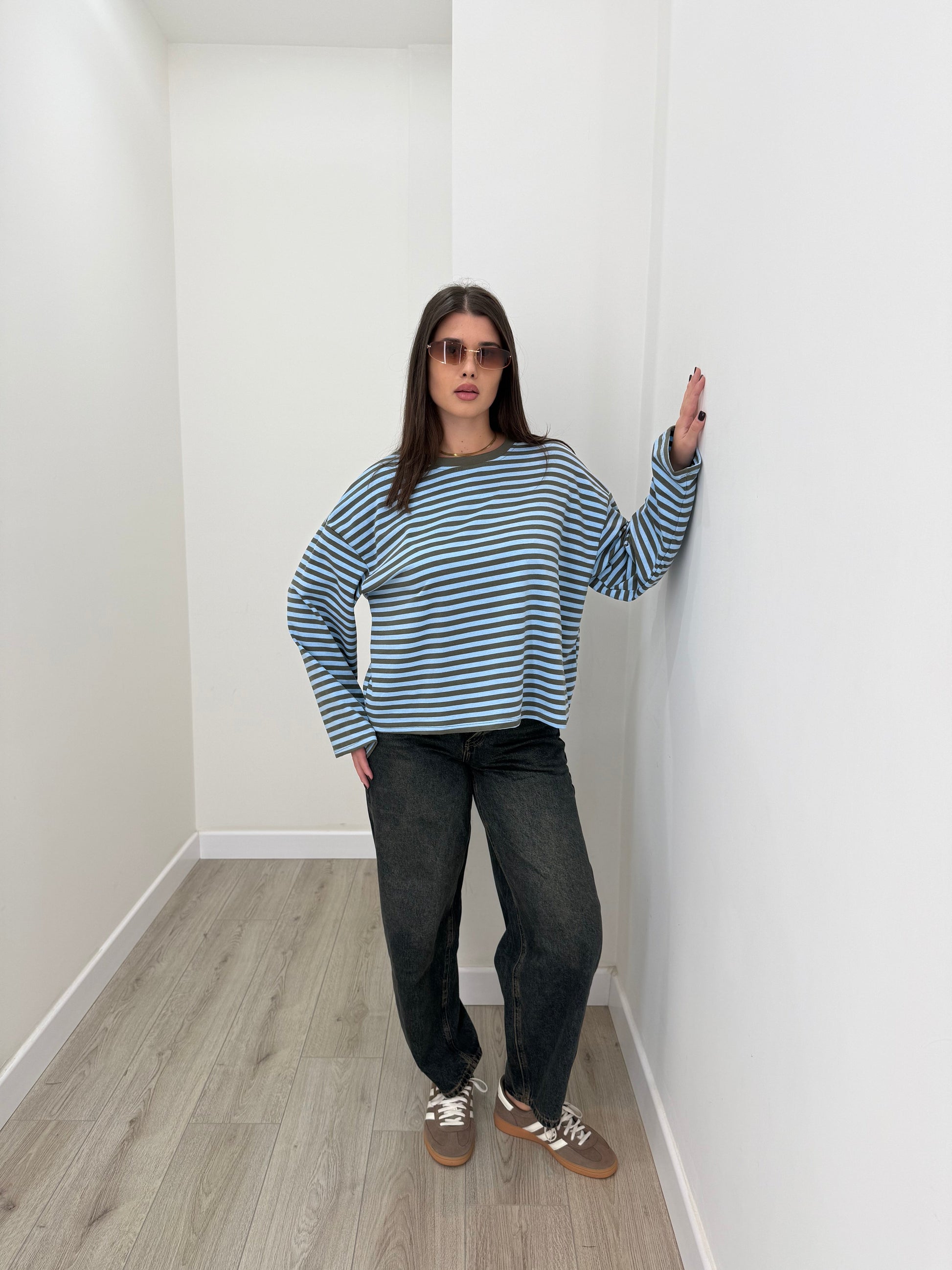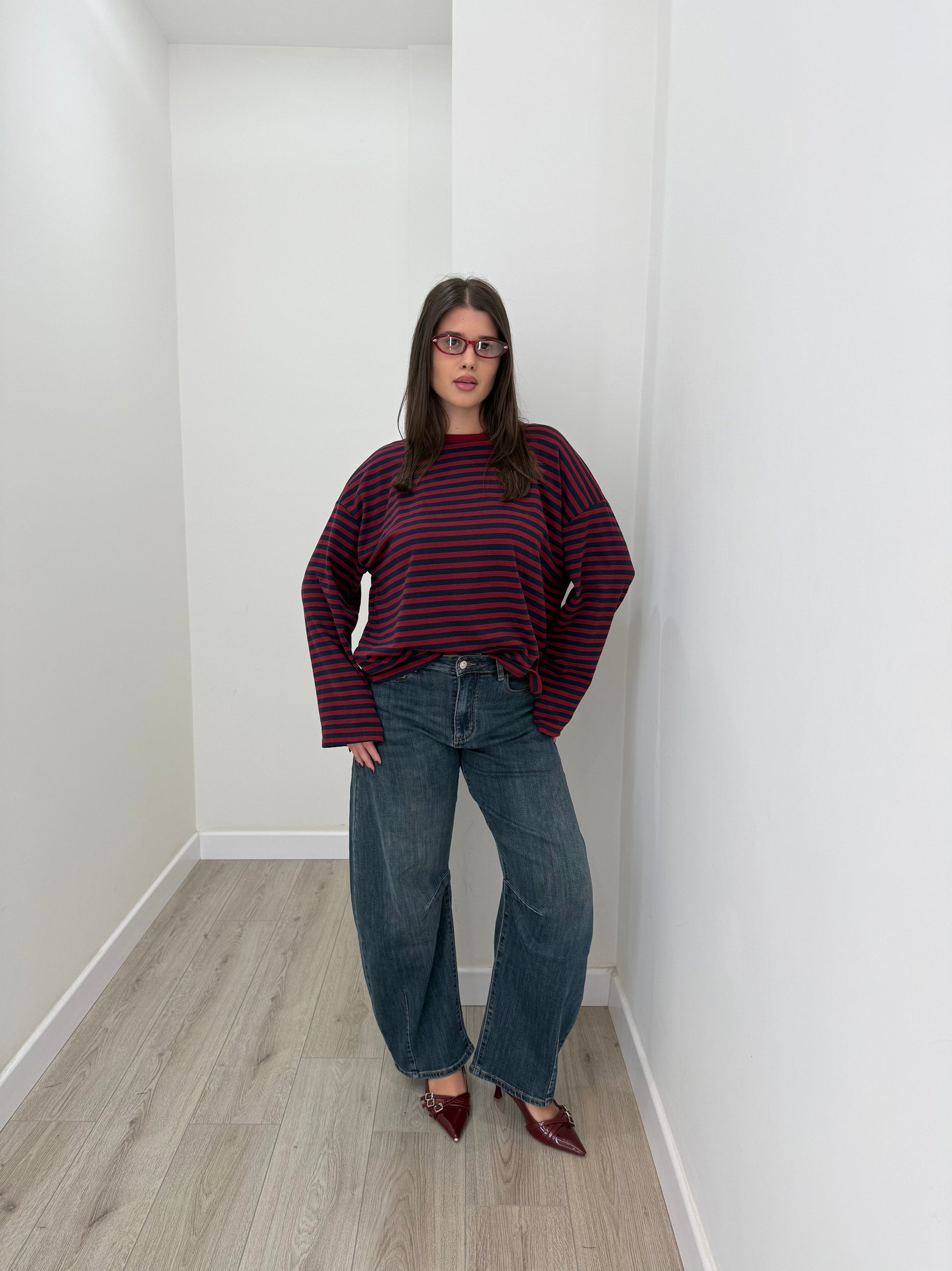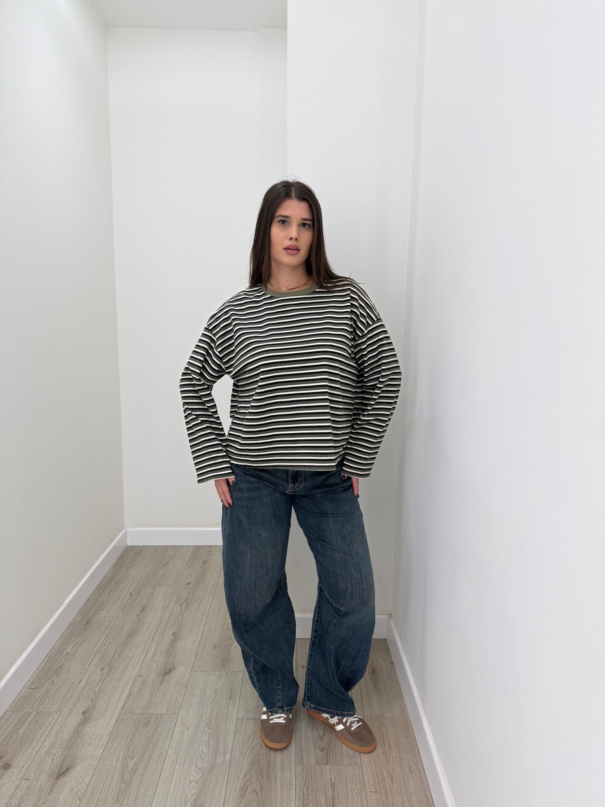 Maglia in cotone a righe con manica ampia, veste fino ad una XL