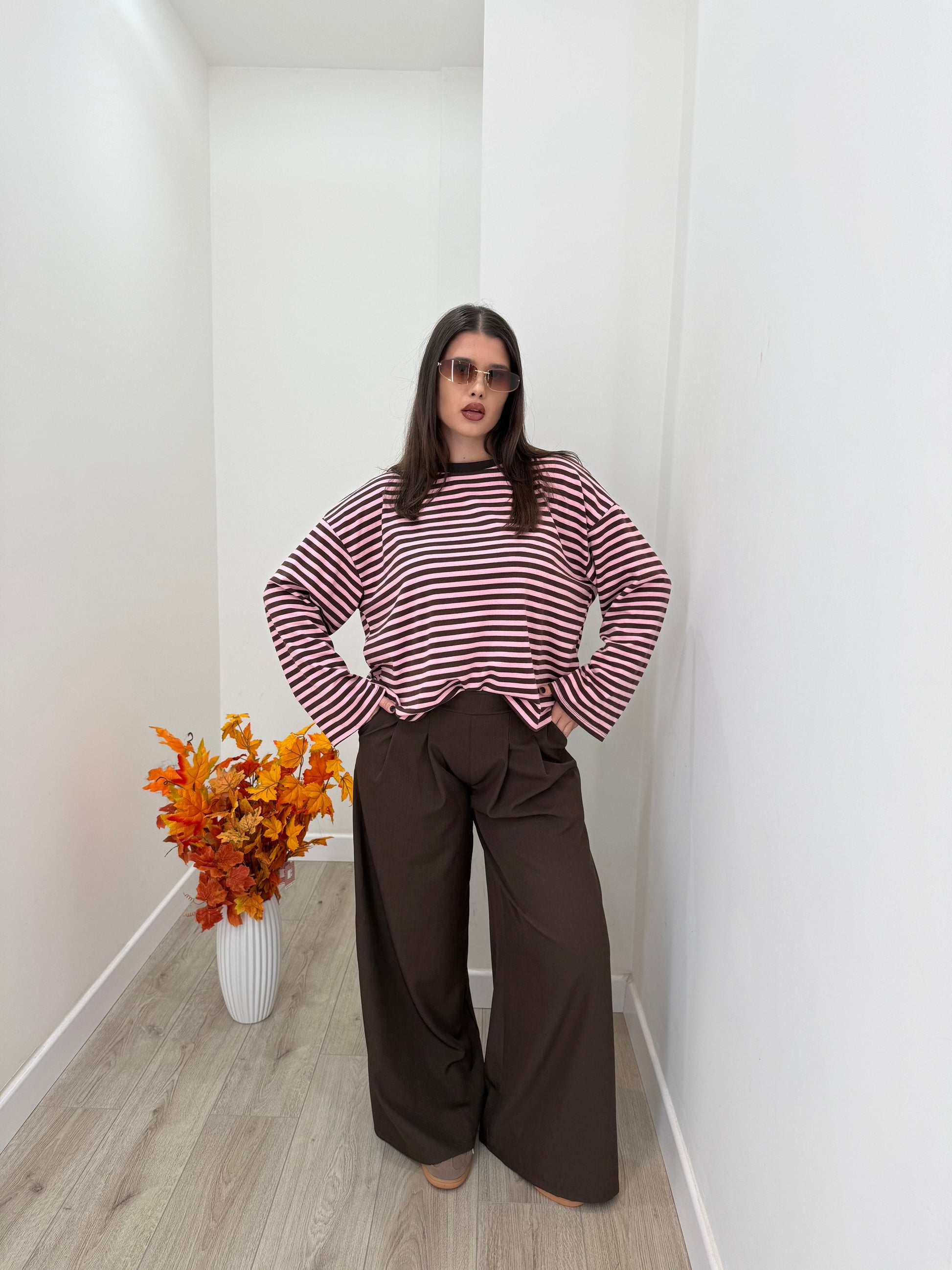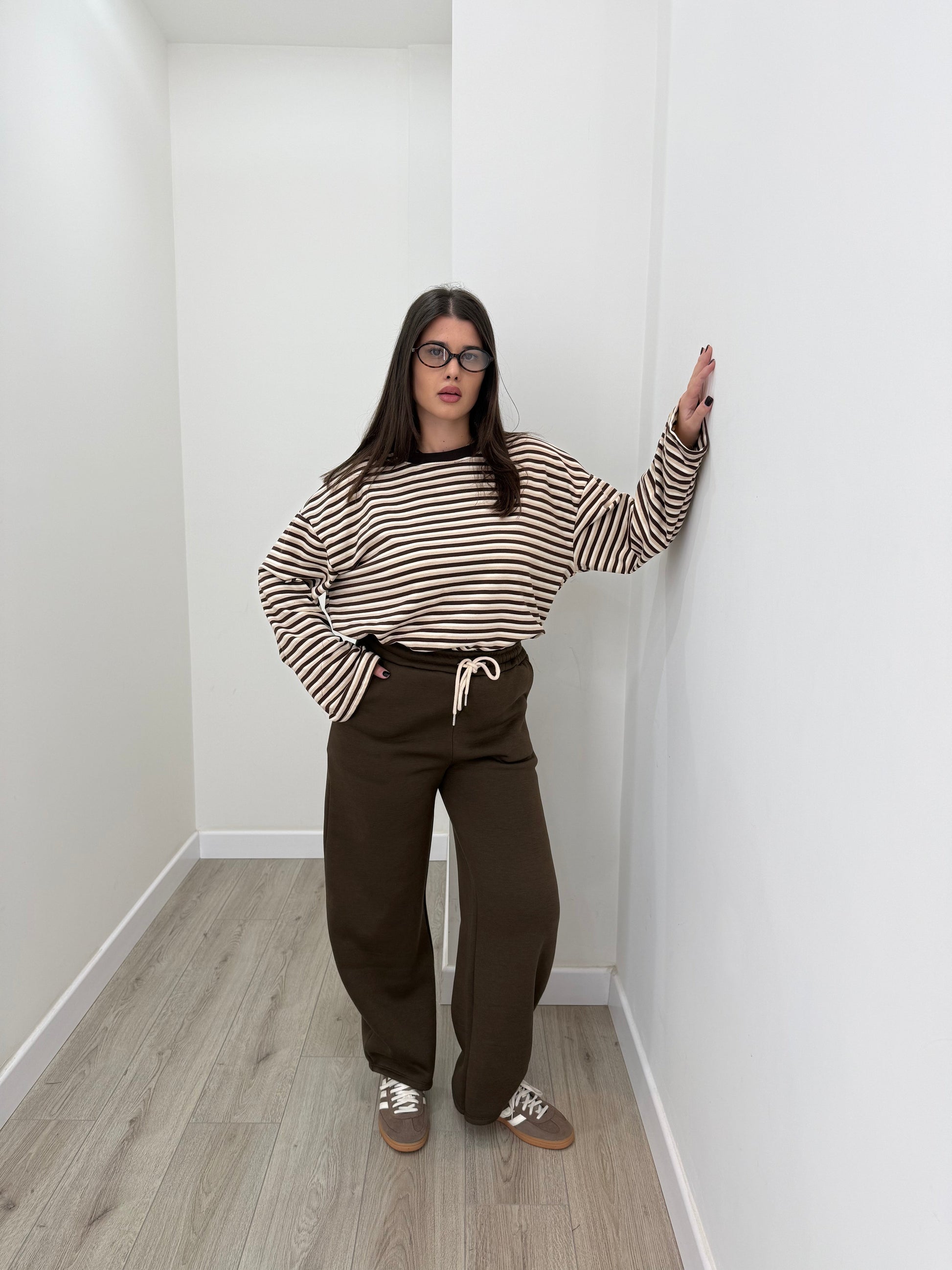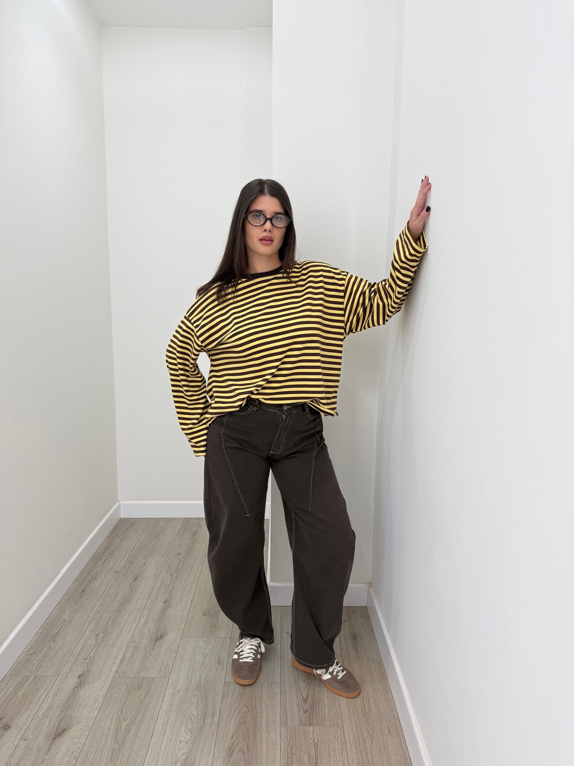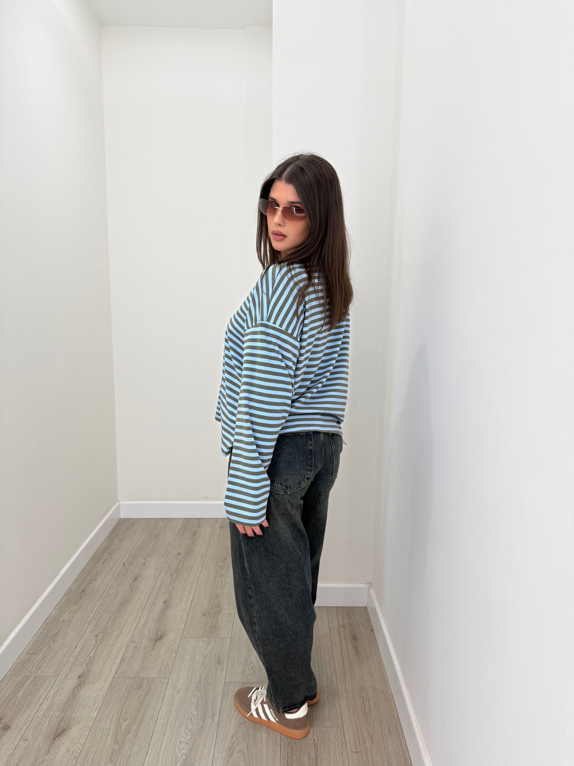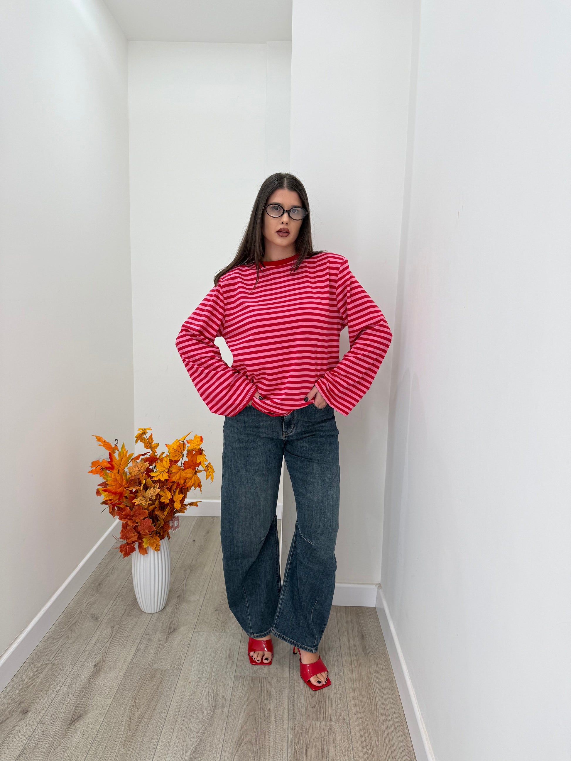 Maglia in cotone a righe con manica ampia, veste fino ad una XL